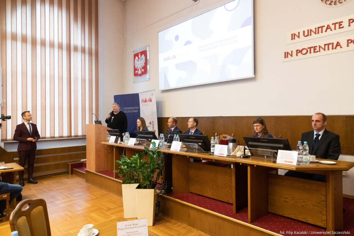 Uczestników spotkania powitała dr hab. Kinga Flaga-Gieruszyńska, prof. US – Prorektor ds. Organizacji US, a gościem specjalnym wydarzenia był dr Dawid Kostecki – Dyrektor NAWA wraz ze współpracownikami.