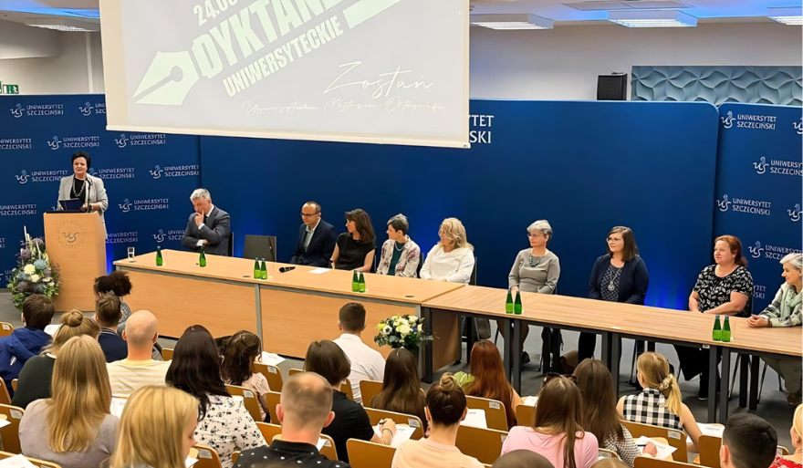 24 maja br. o godzinie 11.00 w auli Geocentrum Uniwersytetu Szczecińskiego 110 śmiałków rozpoczęło zmagania o tytuł Uniwersyteckiego Mistrza Ortografii. Inicjatorką Dyktanda Uniwersyteckiego wydarzenia jest prof. Ewa Kołodziejek, która w tym roku przygotowała tekst dyktanda zatytułowany „Czmychający drużba”