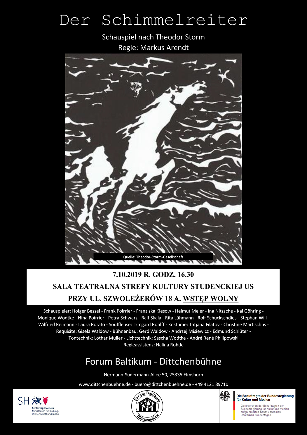 Instytut Literatury i Nowych Mediów zaprasza w poniedziałek, 7 paźdzernika, na niemieckojęzyczny spektakl, który powstał na motywach noweli Theodora Storma „Der Schimmelreiter”.