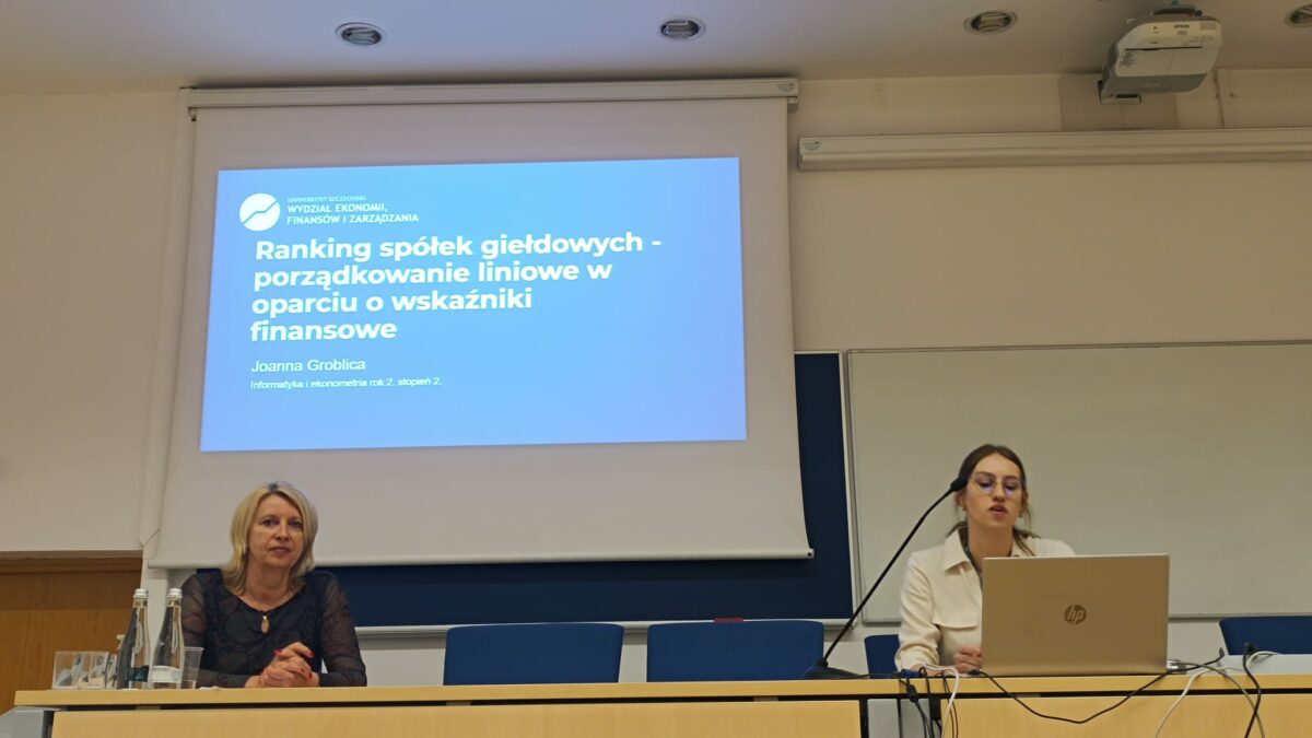 Wydział Ekonomii, Finansów i Zarządzania US reprezentowała Joanna Groblica, studentka Informatyki i Ekonometrii II r, II st. W czasie pierwszej sesji plenarnej wygłosiła referat dotyczący wyników jej badań statystycznych do pracy magisterskiej: Ranking spółek giełdowych – porządkowanie liniowe w oparciu o wskaźniki finansowe. Opiekunem merytorycznym studentki oraz członkiem komitetu naukowego konferencji była dr hab. Iwona Markowicz, prof. US. Studentka otrzymała certyfikat aktywnego uczestnictwa w konferencji oraz certyfikat udziału w warsztatach „Python i Excel” oraz „Wizualizacja w Tableau” (drugi dzień konferencji).