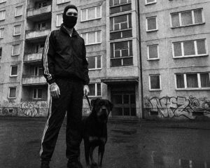 Za spójne ujęcie portretu środowiskowego. Środki zastosowane w obróbce (czerń i biel, wysoki kontrast) oraz przemyślany kadr (ujęcie tła i stylizacja postaci) stanowią realistyczne osadzenie tematu i mają czytelny kontekst.