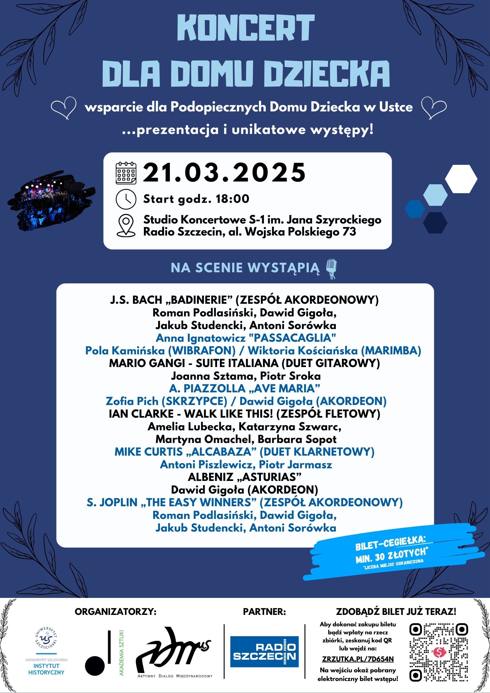 Członkowie koła naukowego Aktywny Dialog Międzynarodowy działającego przy Instytucie Historycznym Uniwersytetu Szczecińskiego, we współpracy ze studentami Akademii Sztuki w Szczecinie, organizują koncert charytatywny na rzecz podopiecznych Centrum Administracyjnego Domów dla Dzieci w Ustce.