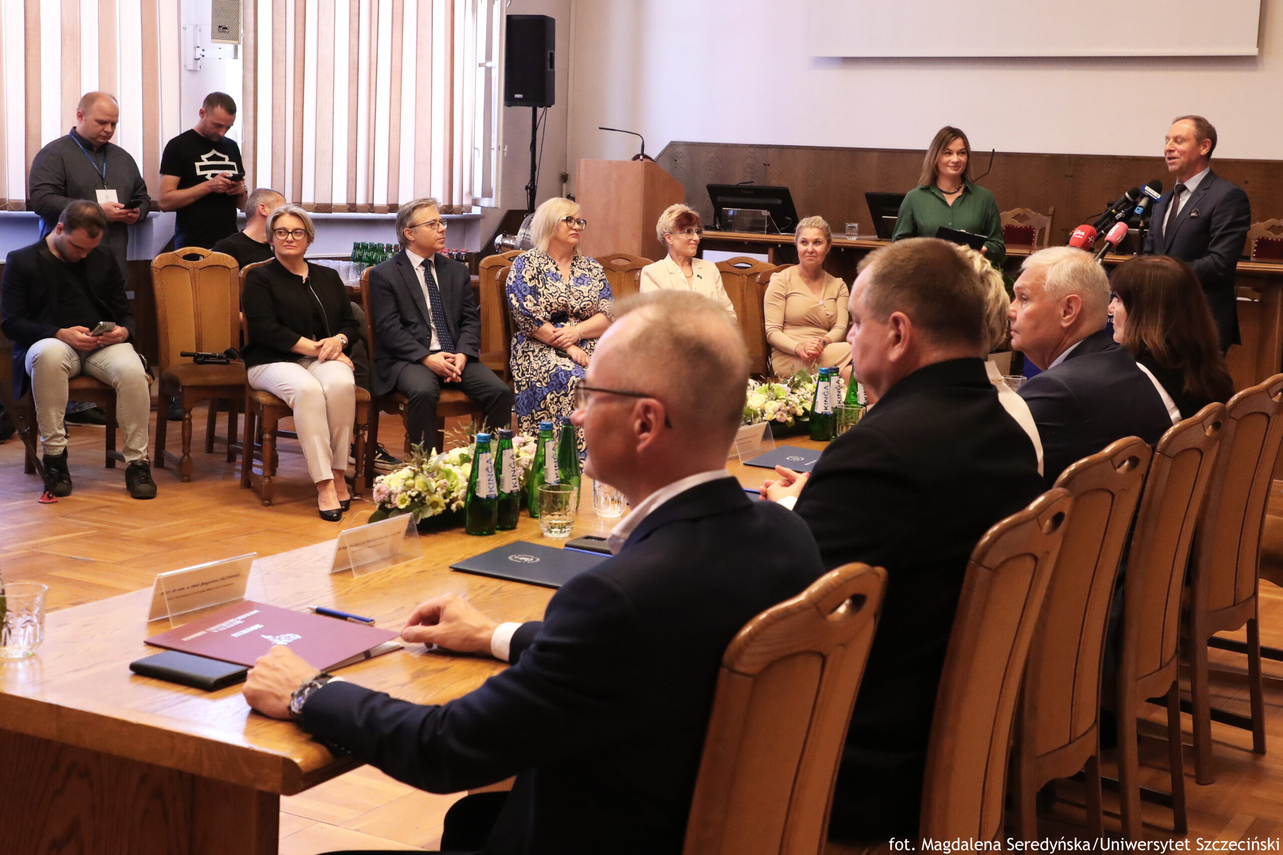 Oprócz władz rektorskich w wydarzeniu uczestniczyli także przedstawiciele szkół doktorskich: dr. hab. Jarosław Korpysa, prof. US – Dyrektor Szkoły Doktorskiej Uniwersytetu Szczecińskiego, prof. dr hab. Waldemar Wojciechowski – Dyrektor Szkoły Doktorskiej Akademii Sztuki, prof. dr hab. inż. Agata Markowska-Szczupak – Dyrektor Szkoły Doktorskiej w ZUT, prof. dr hab. n. zdr. Anna Lubkowska – Dyrektor Szkoły Doktorskiej PUM, dr hab. inż. Dariusz Lipiński, prof. PK – Dyrektor Szkoły Doktorskiej Politechniki Koszalińskiej i dr hab. inż. Magdalena Kaup, prof. PM – Dyrektor Szkoły Doktorskiej Politechniki Morskiej.
