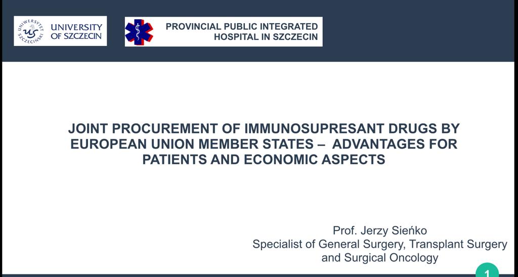 13 lipca 2023 r. prof. dr hab. n. med. Jerzy Sieńko, pracownik Instytutu Nauk o Kulturze Fizycznej Uniwersytetu Szczecińskiego, wystąpił jako ekspert na sesji Podkomisji Zdrowia Parlamentu Europejskiego z prelekcją dotyczącą wspólnych zakupów leków immunosupresyjnych przez Unię Europejską w celu zapobiegania ich niedoborom.