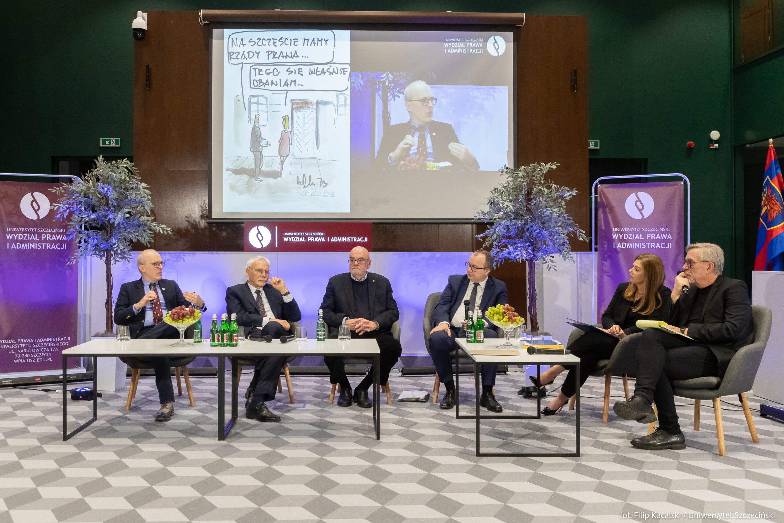 27 stycznia 2023 r. w sali sesyjnej Rady Miasta Szczecina odbył się Areopag: O pojmowaniu praworządności – czy współczesne mechanizmy prawne nadążają za procesami społecznymi?, który zgromadził najwybitniejszych polskich prawników. Na zaproszenie Wydziału Prawa i Administracji Uniwersytetu Szczecińskiego do Szczecina przyjechali: prof. Marek Safjan, prof. Jerzy Zajadło, prof. Marek Zubik, prof. Adam Bodnar, aby dyskutować na temat praworządności. Obrady poprowadził jeden z czołowych polskich publicystów telewizyjnych, radiowych i prasowych – redaktor Jacek Żakowski. Przebieg dyskusji na bieżąco ilustrował sędzia Arkadiusz Krupa, znany jako autor satyrycznych rysunków, które umieszcza na stronie Ślepym Okiem Temidy.