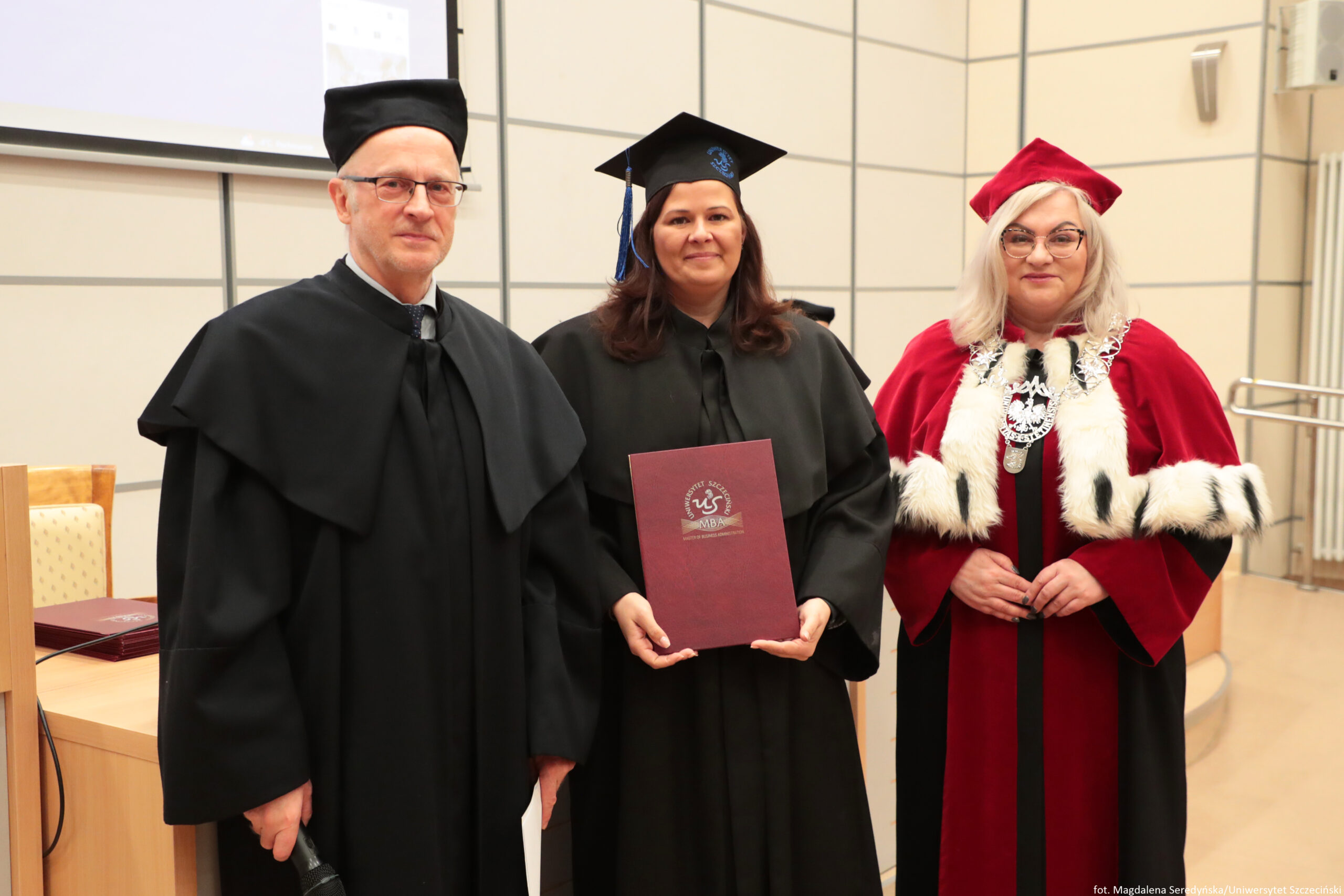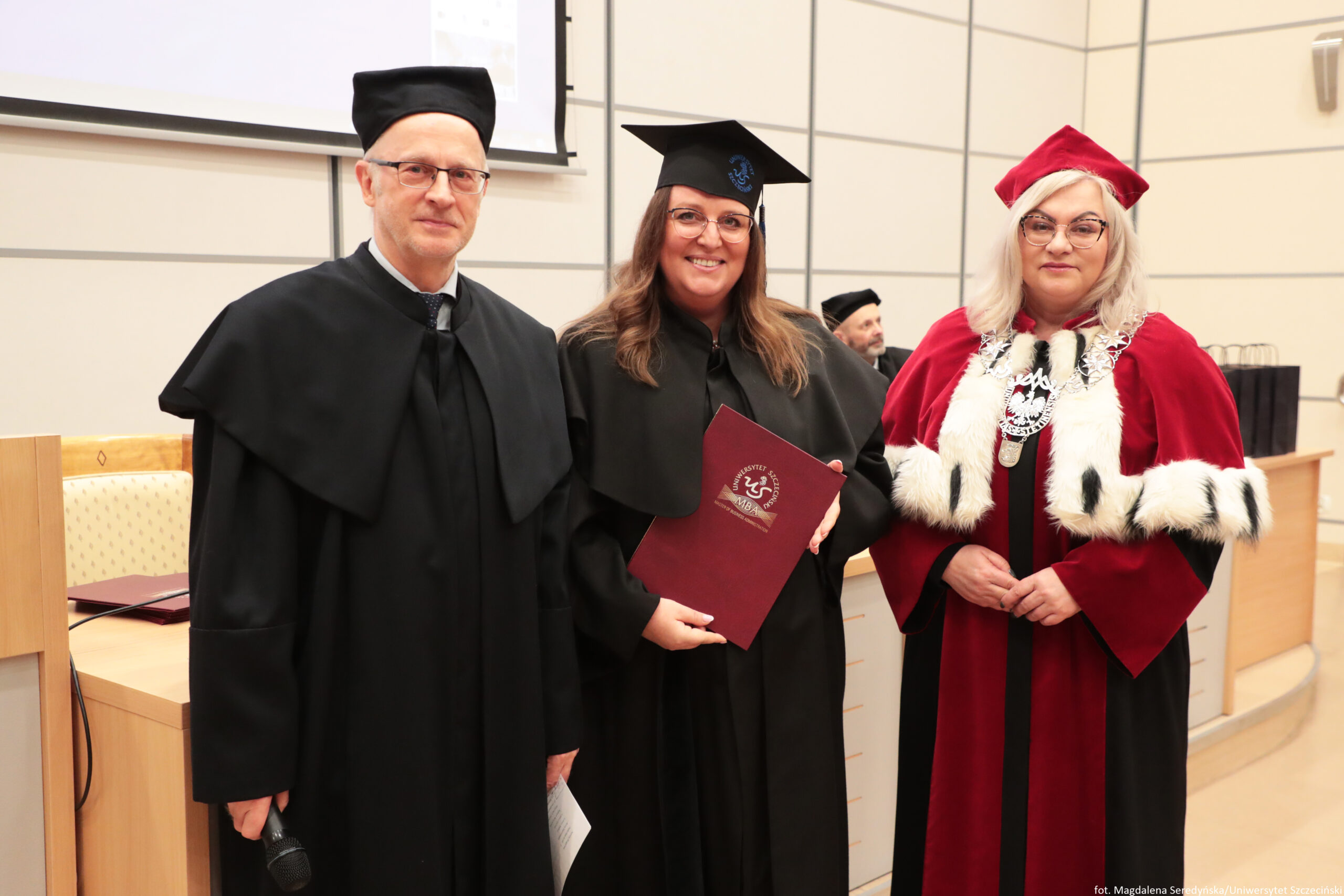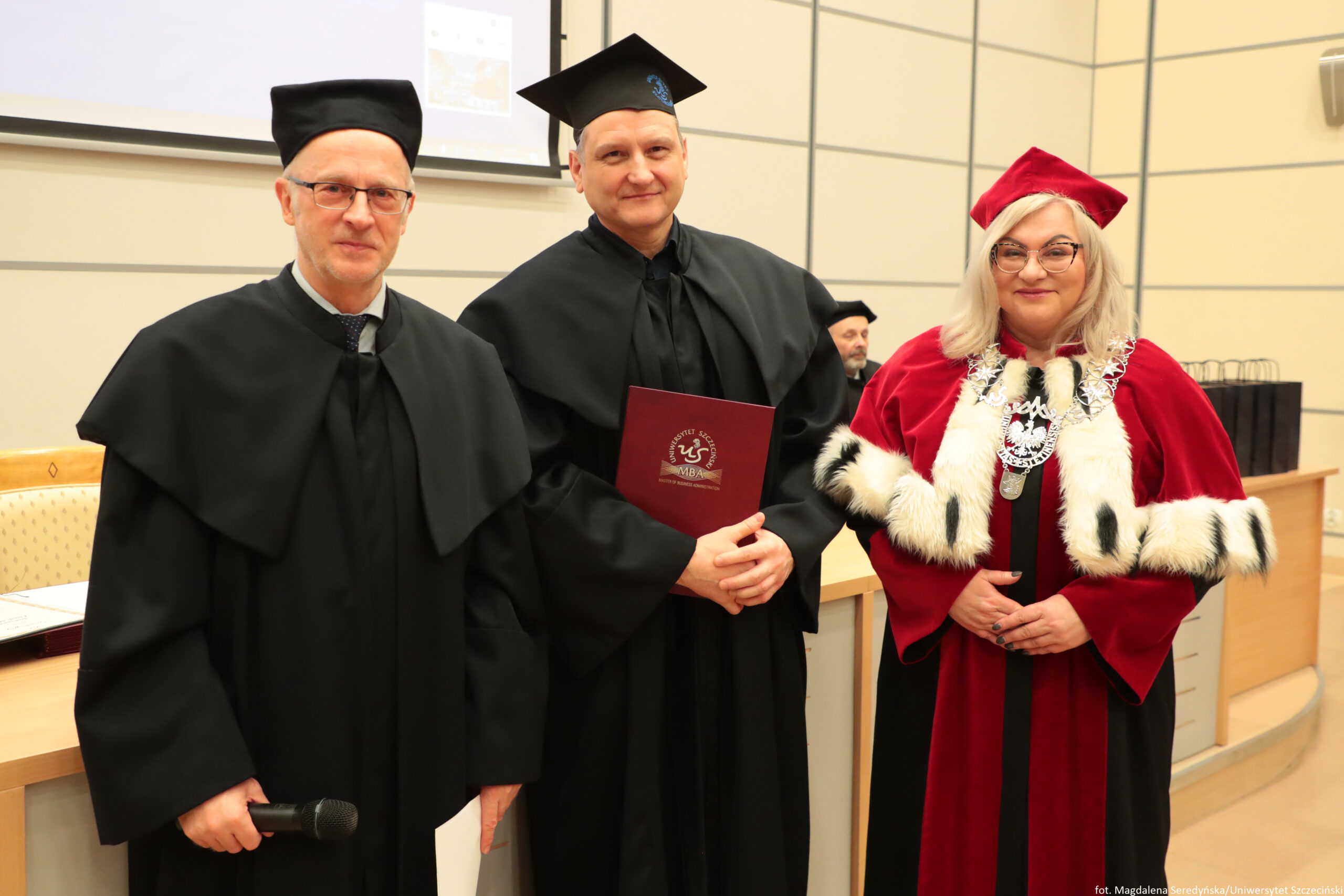 24 stycznia 2026 roku na Wydziale Ekonomii, Finansów i Zarządzania odbyła się uroczystość zakończenia kolejnych edycji studiów Master of Business Administration Uniwersytetu Szczecińskiego.