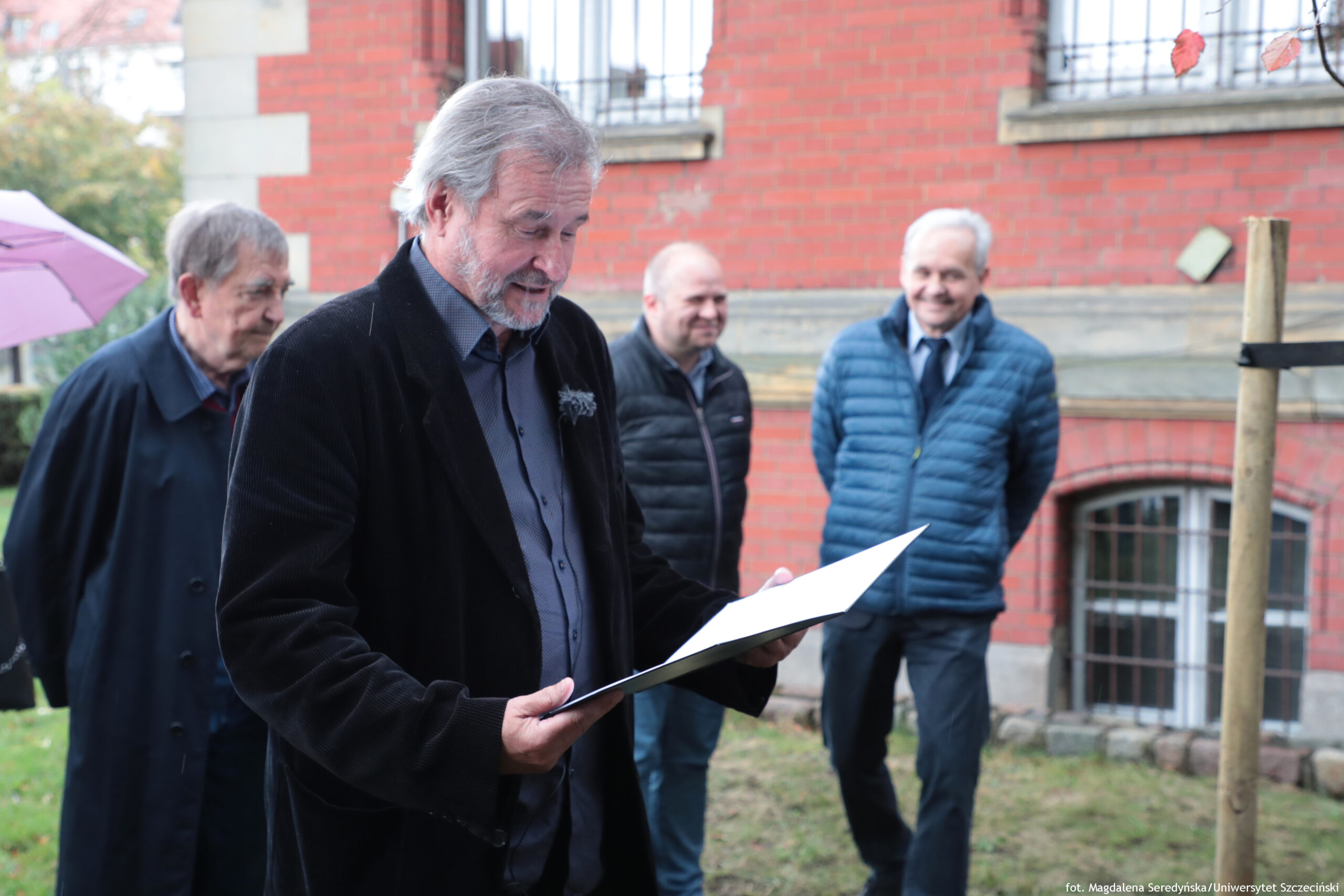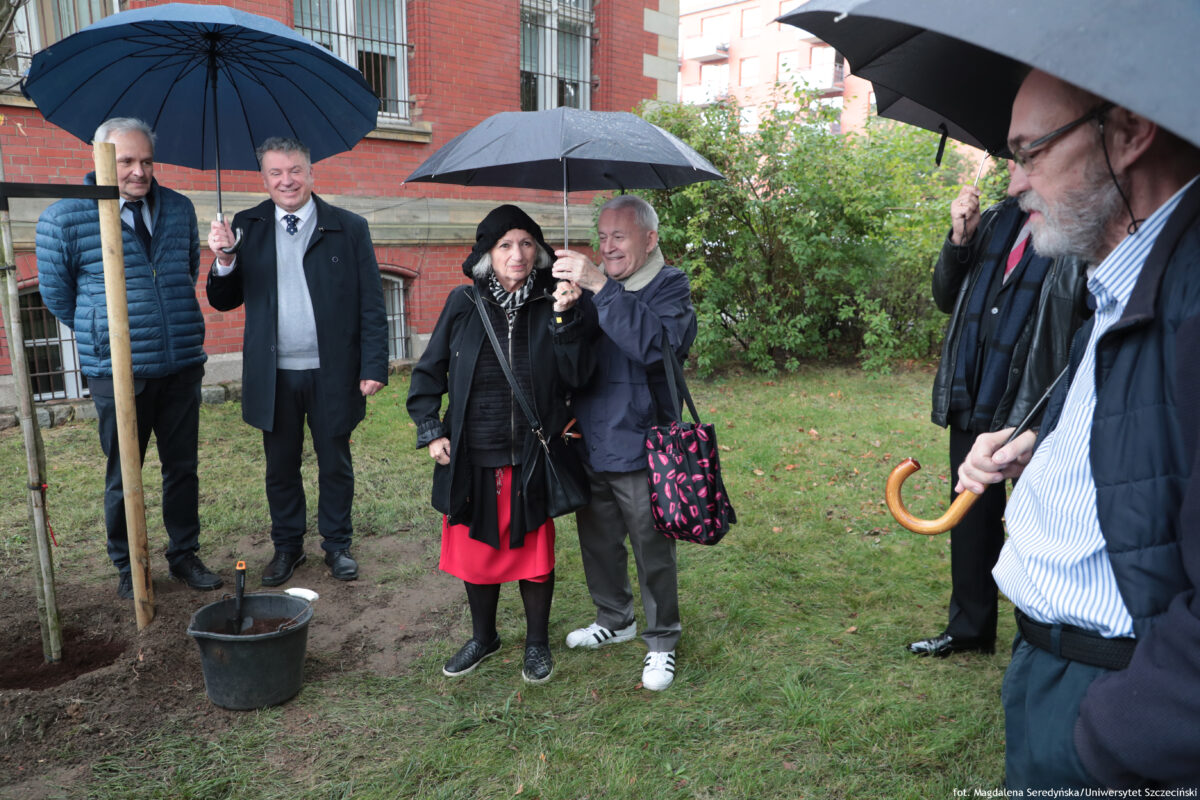 Przed spotkaniem miała miejsce symboliczna ceremonia zasadzenia drzewa klonu przy budynku rektoratu Uniwersytetu Szczecińskiego. W uroczystości wzięli udział m.in. prof. Andrzej Skrendo, Prorektor ds. Nauki Uniwersytetu Szczecińskiego oraz Paweł Bartnik, przewodniczący Rady Miejskiej w Szczecinie, absolwent Wydziału Humanistycznego Wyższej Szkoły Pedagogicznej w Szczecinie, poprzedniczki naszego Uniwersytetu.