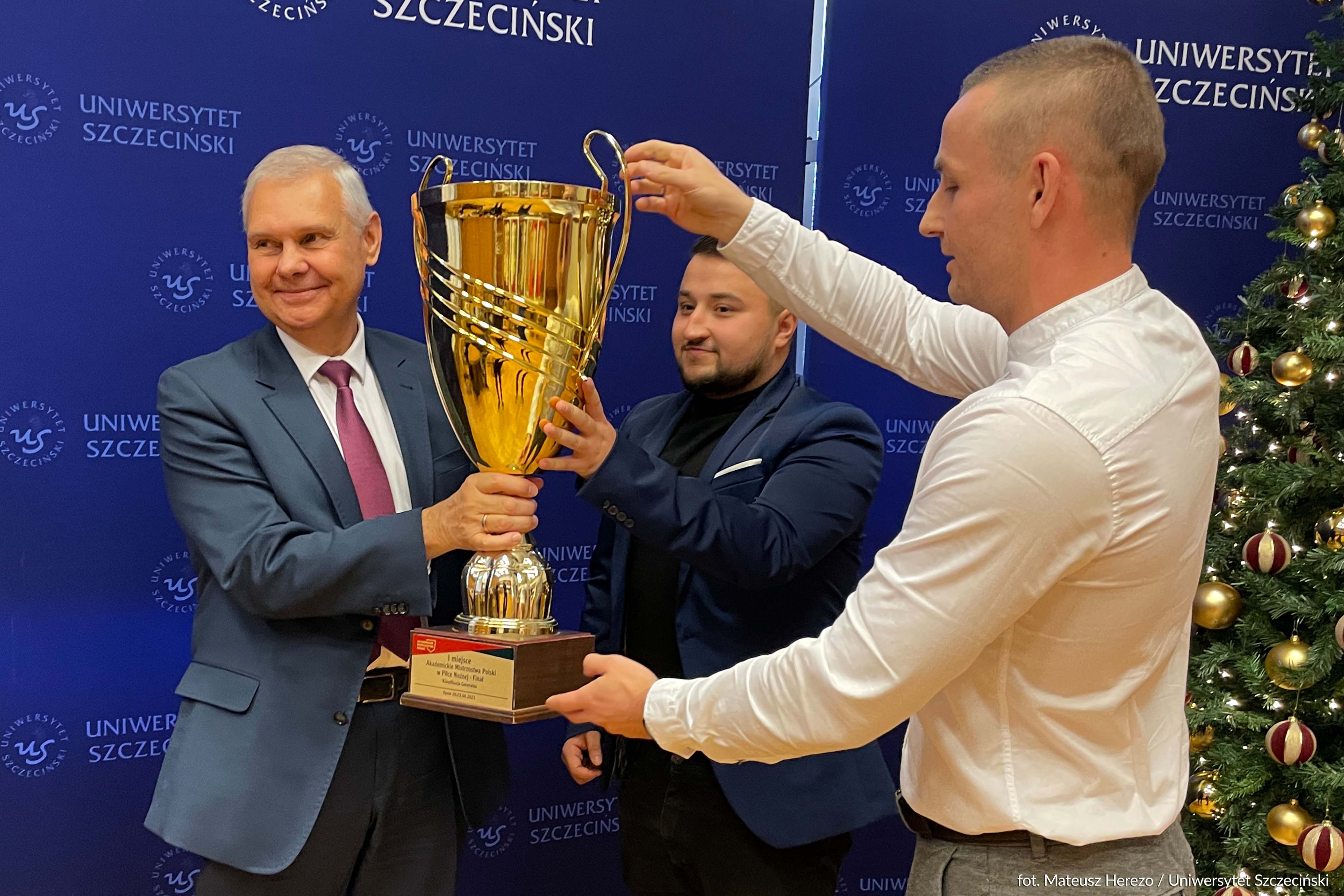 Rektor US, prof. Tarczyński, wręczając sportowcom upominki oraz listy gratulacyjne, mówił, że są dumą naszej Uczelni i liczy na to, że drużyna obroni tytuł również za rok.