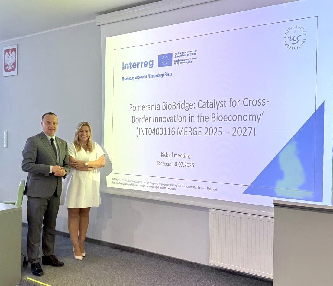 Z dumą i satysfakcją informujemy, że zespół pracowników Uniwersytetu Szczecińskiego w składzie: dr hab. Jarosław Korpysa, prof. US – koordynator, dr Agnieszka Łopatka oraz mgr Agnieszka Skrycka, otrzymał prestiżowy projekt naukowo-badawczy pt. „Pomerania BioBridge: Katalizator transgranicznych innowacji w biogospodarce”.