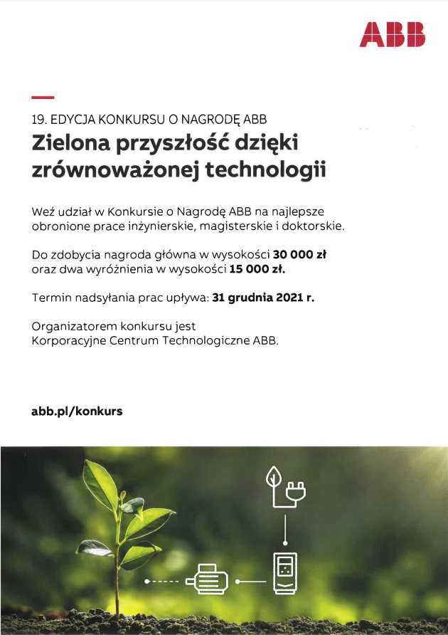 Rusza XIX edycja Konkursu o Nagrodę ABB, którego celem jest promowanie i wspieranie utalentowanych osób pasjonujących się zaawansowanymi technologiami. Konkurs obejmuje obronione prace magisterskie, inżynierskie oraz doktorskie, napisane w języku polskim lub angielskim, z następujących dziedzin: