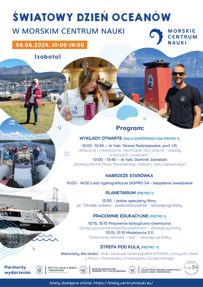 W dniu 8 czerwca 2024 roku obchodzimy Światowy Dzień Oceanów. Z tej okazji informujemy o tegorocznych obchodach, które odbędą się Morskim Centrum Nauki, a głównym organizatorem wydarzenia jest Koło Naukowe Oceanografów KRAKEN, działające przy INoMiŚ.