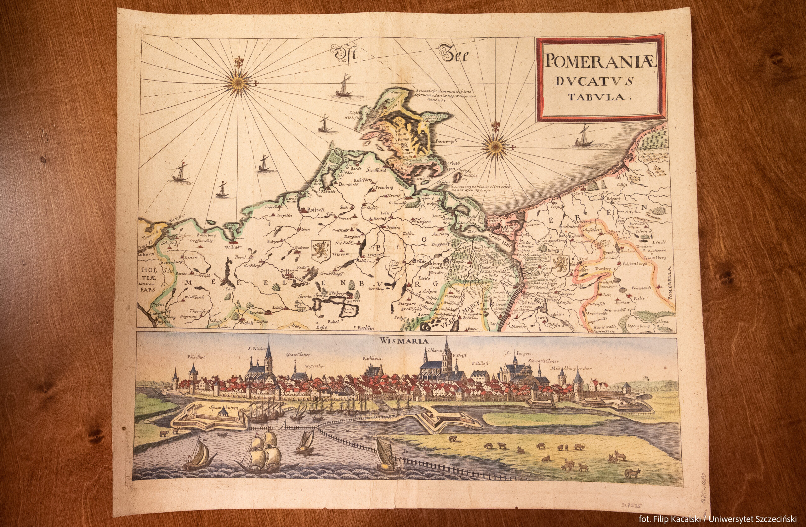 Unikatowa mapa anonimowego autorstwa, przedstawia ziemie dawnego Księstwa Pomorskiego po podziale między Szwecję a Brandenburgię. W dolnej części widok Wismaru, w którym znajdował się trybunał (sąd najwyższy) dla niemieckich posiadłości korony szwedzkiej. Technika wykonania: miedzioryt kolorowany. Mapę zakupiła Szczecińska Energetyka Cieplna za kwotę 1500 euro.