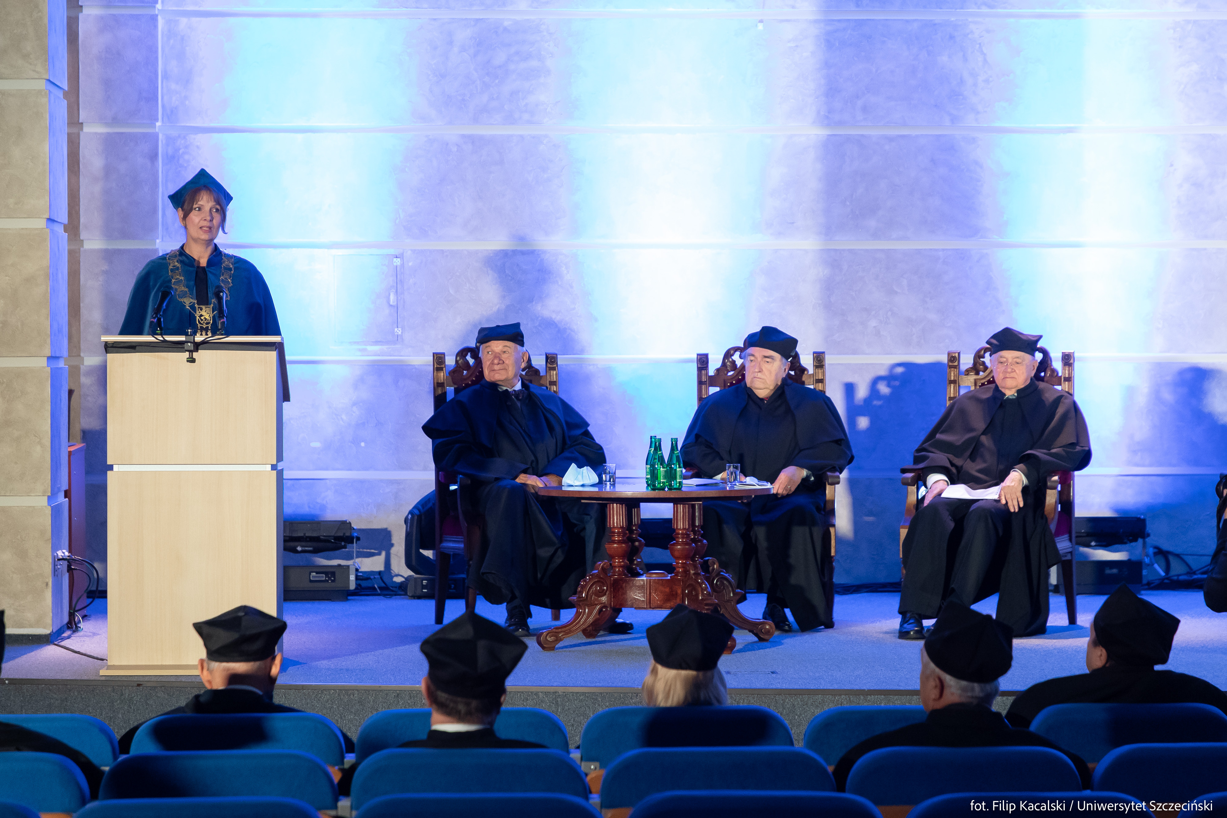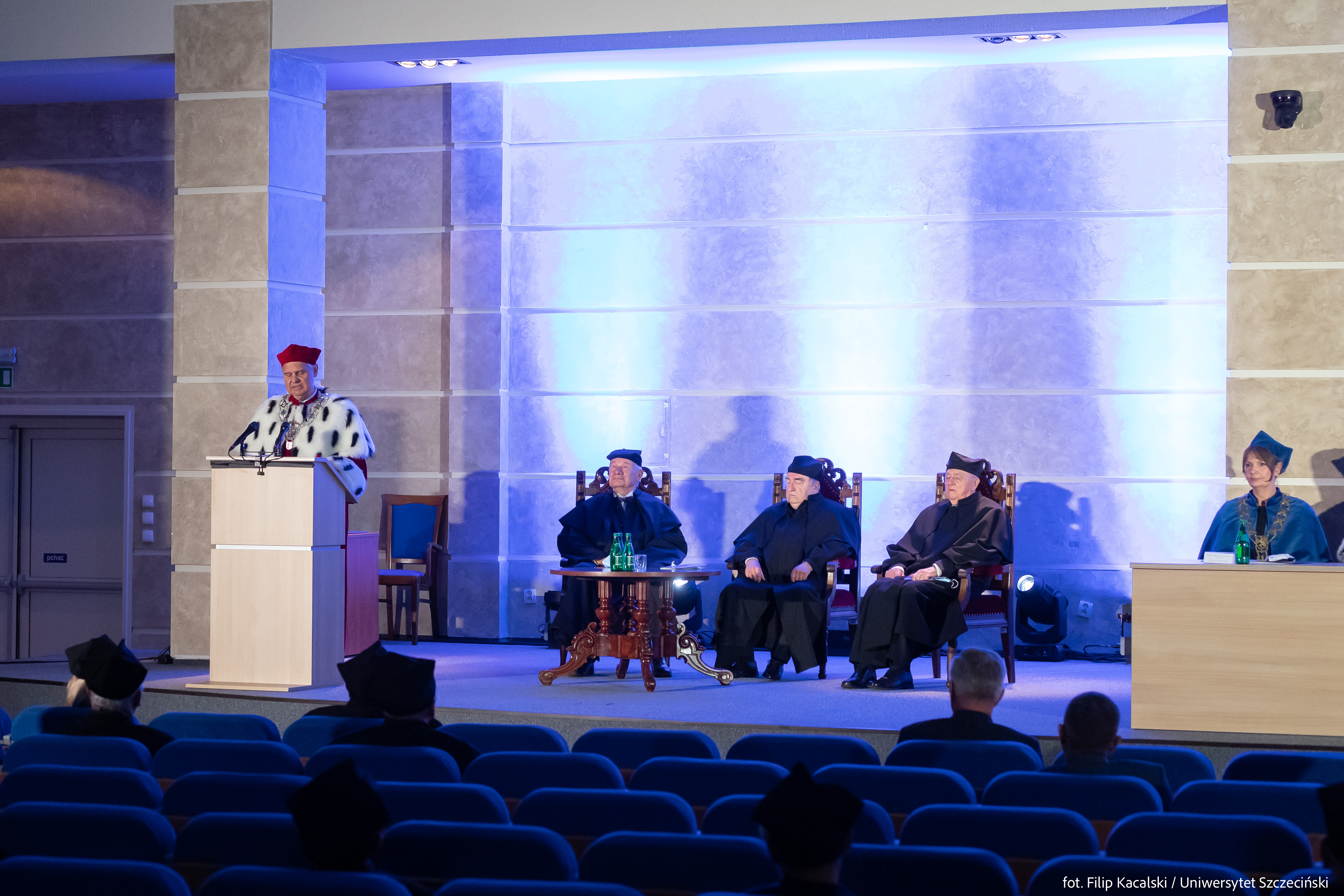 W uroczystości udział wzięli przedstawiciele władz samorządowych, środowiska akademickiego w Szczecinie, goście z uczelni w Poznaniu, Katowicach i Krakowie, a także główni bohaterowie tego dnia – Dostojni Profesorowie oraz przedstawiciele szeroko rozumianej społeczności szczecińskiej ekonomii.  To ważne dla naszej Uczelni wydarzenie rozpoczęło się od wystąpienia prof. dr hab. Waldemara Tarczyńskiego, Rektora US, który podkreślał, zapisana została piękna karta historii, nie tylko Uniwersytetu Szczecińskiego,ale także Szczecina i regionu.