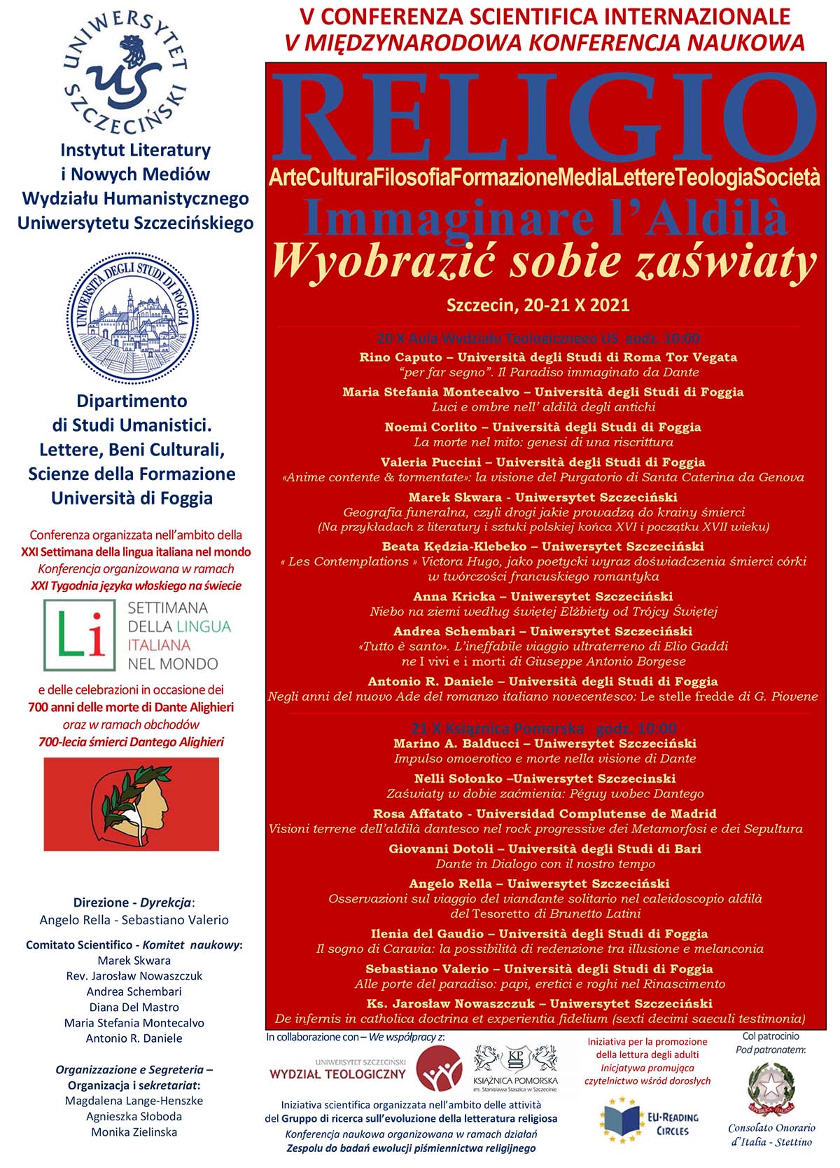 Celem konferencji jest zidentyfikowanie i omówienie wielości obrazów życia pozagrobowego, do których odnoszą się różne tradycje literackie i religijne, w celu określenia ich osobliwości i wspólnych cech, które mogą w pewien sposób rzucić światło na fundamentalny aspekt życia człowieka i jego potrzeby odnoszenia się do życia pozagrobowego.