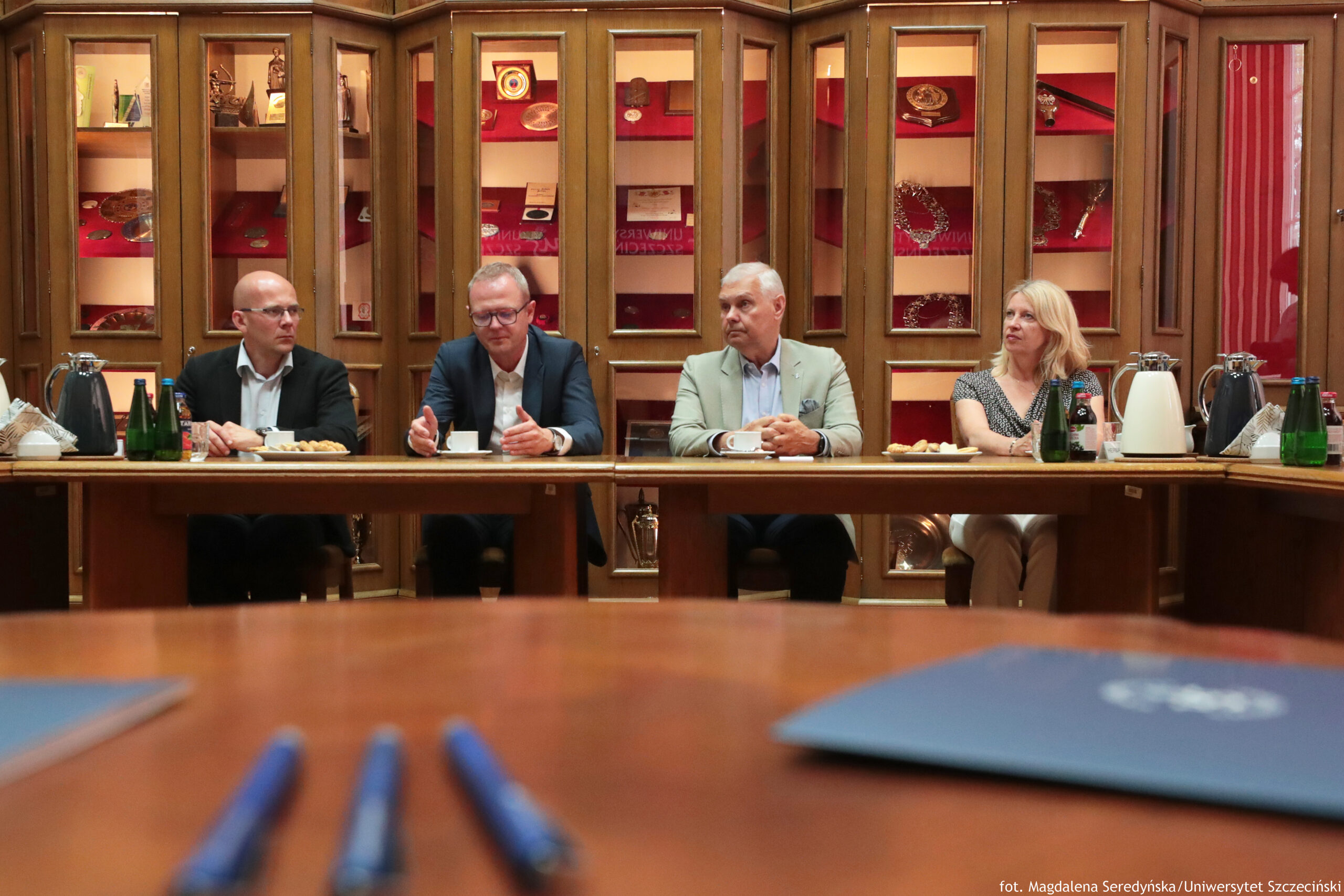 W wydarzeniu ze strony Uczelni wzięli udział: prof. dr hab. Waldemar Tarczyński – Rektor Uniwersytetu Szczecińskiego, dr hab. Iwona Markowicz, prof. US – Dziekan Wydziału Ekonomii, Finansów i Zarządzania, prof. dr hab. Piotr Niedzielski z Instytutu Zarządzania i dr Sebastian Gnat – Pełnomocnik Rektora, Koordynator ds. Praktyk i Współpracy z Otoczeniem Społeczno-Gospodarczym na Wydziale Ekonomii, Finansów i Zarządzania. Z kolei firmę Budimex S.A. reprezentowali: Łukasz Janowski – Dyrektor Rejonu (Dyrekcja Budownictwa Infrastrukturalnego Zachód) i Sławomir Krekora – Dyrektor Kontraktu.