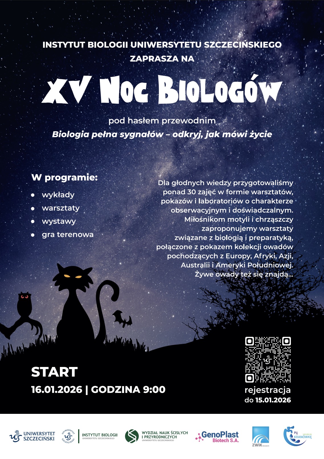 Pełny program wydarzenia oraz formularz rejestracji dostępne są pod adresem: www.nocbiologów.pl. Zapisy na poszczególne aktywności trwają do 15 stycznia 2026 r.