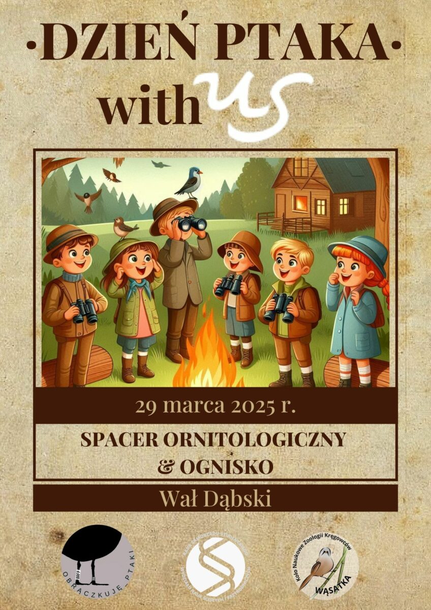 Z okazji Międzynarodowego Dnia Ptaków (1 kwietnia) Koło Naukowe Zoologii Kręgowców „Wąsatka”, Obrączkuję ptaki i Samorząd Studencki Wydziału Nauk Ścisłych i Przyrodniczych US zapraszają na spacer ornitologiczny połączony z ogniskiem.